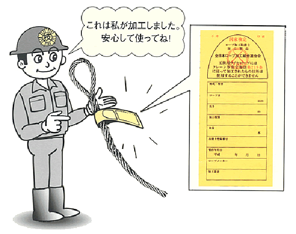 ロープ加工技能士は、豊富な経験と優れた技能を有している厚生労働省が認定した国家検定合格者です。 ロープ加工技能士が加工した製品には、下に示すようなラベルが付けられています。そのラベルには、ロープ加工の 技能士登録番号が記入されています。